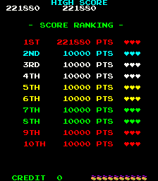 Un début de partie particulièrement laborieux (j'en étais déjà à ma dernière vie au début du tableau 4 et j'ai failli abandonner) mais les choses se sont heureusement arrangées par la suite. Curieux, on ne peut pas entrer son nom dans le tableau des scores... un bug rescapé ?