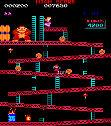 A première vue, DONKEY KONG est un simple clône de CRAZY KONG : le joueur incarne toujours Mario, le célèbre plombier, volant au secours de sa bien-aimée retenue prisonnière par un gorille au sommet d'un immeuble en construction. On retrouve aussi les habituels tonneaux, boules de feu et autres monte-charge au cours de la partie. Mais DONKEY KONG se distingue par l'enchaînement de ses niveaux : le premier "immeuble" ne compte que 2 tableaux, le suivant 3, jusqu'à atteindre une succession de 6 tableaux au bout du 5ème "tour".