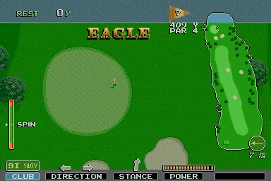 Cette vidéo correspond à ma première victoire dans ce jeu. J'ai réussi quelques jolis coups dans cette partie dont un "hole in one" au trou n°3 (ça, je commence à savoir faire), un "birdie" depuis l'extérieur du green au trou n°6 et un "eagle" vraiment inattendu au trou n°7. Mon coup le plus réussi dans le green est le "birdie" final du trou n°8. L'approche du but m'a fait faire quelques bêtises en fin de partie, ce qui me vaut d'échouer à un petit point du meilleur score... mais je ne regrette rien dans cette partie que je ne suis sans doute pas prêt de rééditer !