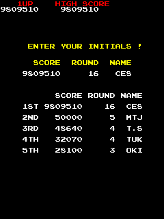 Une partie où j'ai frôlé le "blocage de compteur" que j'avais autrefois atteint sur la borne. Malgré les vies perdues en cours de route, je suis assez satisfait de cette partie où j'ai adopté une nouvelle technique pour signer un "perfect" au niveau 11, après avoir fait de même pour le 7e quelques jours plus tôt. Mais il y a un "mais" : une fin totalement inattendue au niveau 10, où le "boss" s'est "coincé" tout seul, avec pour conséquence un "fantastic round bonus" de 100000 points au lieu des 500000 que j'étais sur le point de récolter en signant un "99.9%" tout à fait à ma portée ! Les 400000 pts envolés dans l'opération m'auraient permis d'accrocher sans mal le score espéré de 9999990. Ce sera donc pour une autre fois...